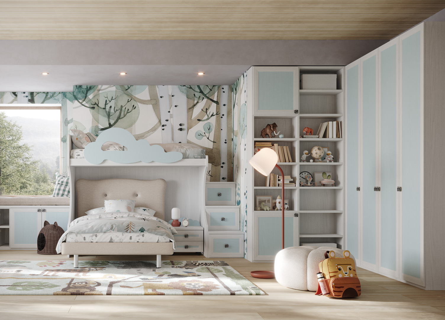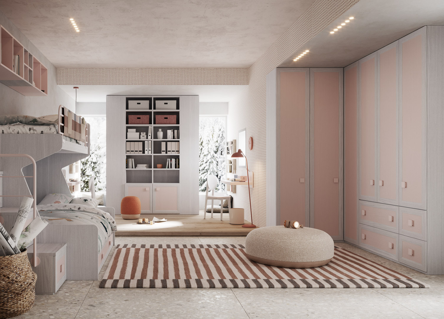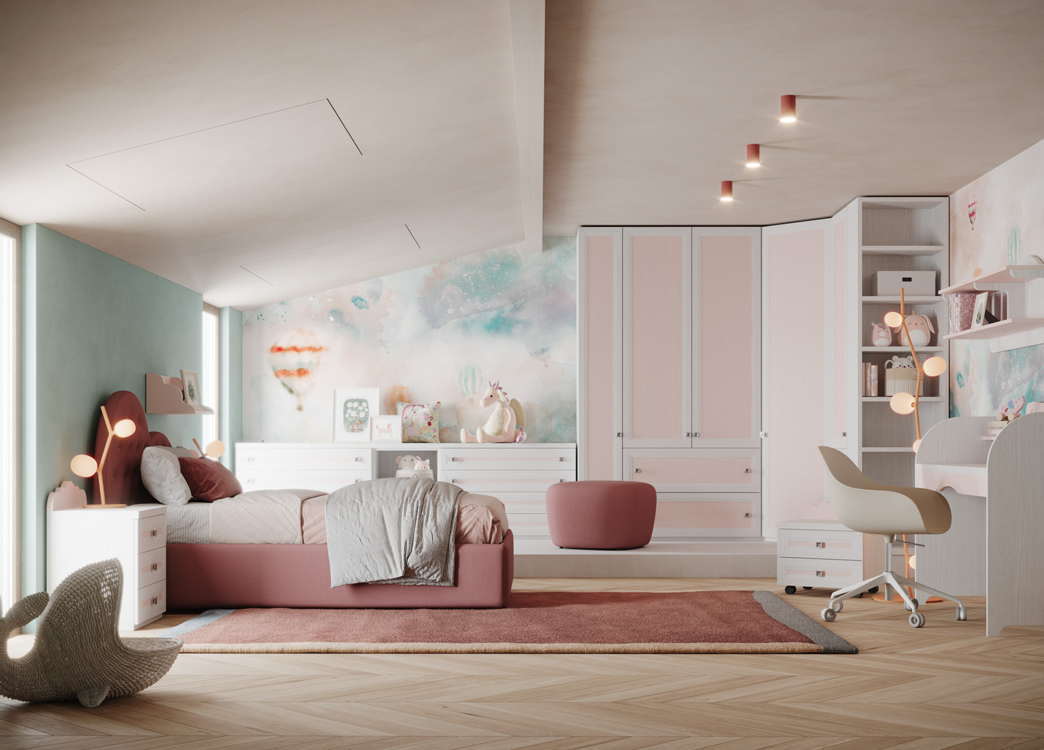 FLY è la linea di camerette romantiche e accoglienti che, grazie a oltre dieci finiture nobilitate, si adatta perfettamente a ragazzi e ragazze di tutte le età. Soluzioni versatili e curate nei dettagli permettono di creare ambienti armoniosi, funzionali e ricchi di personalità.